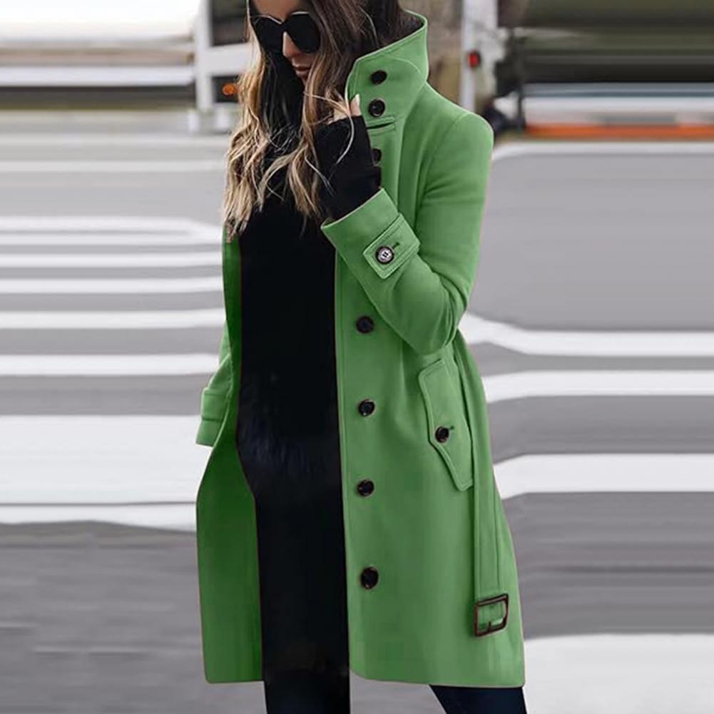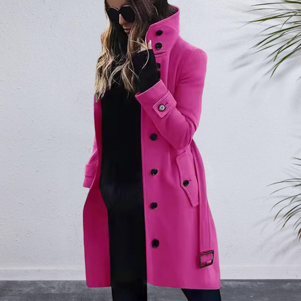 Women Woolen Coat Loose Fit Wool Jacket Stylish Plus Size Woolen Coat with High Collar Belt for Women Long Sleeve for Dating