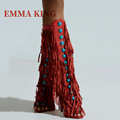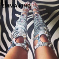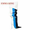 Women’s Belt Buckle Design Knee High Boots Sexy Open Round Toe Gladiator Boots Fashion Long High Heel Zipper Boots Evening Shoes