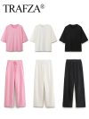 Women’s Clothing Set Summer Square Collar Lady’s Camisole Waist Fold Slim Fit Female Pants Trousers Women’s Set Two Pieces