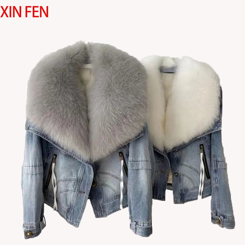 Womens Coats Spring 2025New 100%Natural Real Fox Fur Collar Fashion Short Denim Jacket Luxury Goose Down Puffer Jackets Clothing
