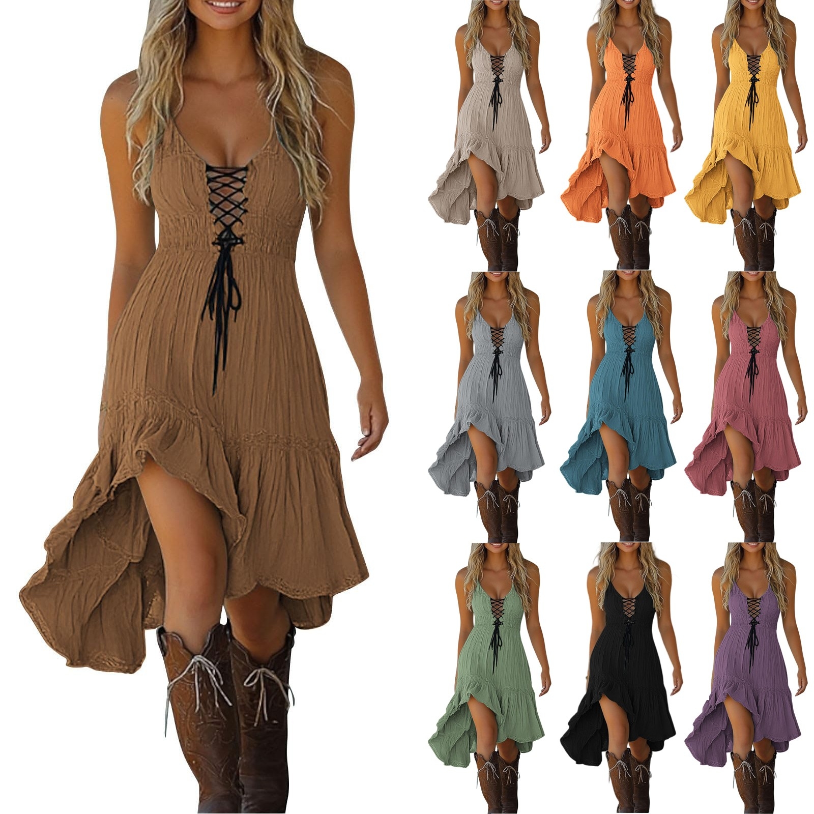 Womens Dresses Vintage Midi Dress Casual Sleeveless Ruffled Sundresses Halloween Western Outfit Vestidos De Verano 2025