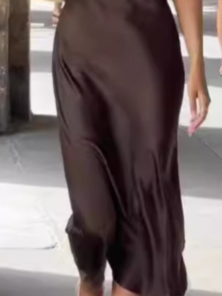 2 reviews for Women’s Elegant Satin Sleeveless Midi Dress Fashion Solid Color O Neck Slim Fit Dresses Female Stylish Street Party Vestido 2024