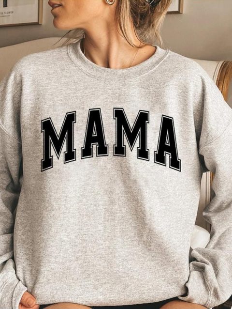 Mama Varsity Sweatshirt Mom Life Hoodie Super Mom Shirt Mother’s Day Tops Women Fashion Crewneck Sweatshirts