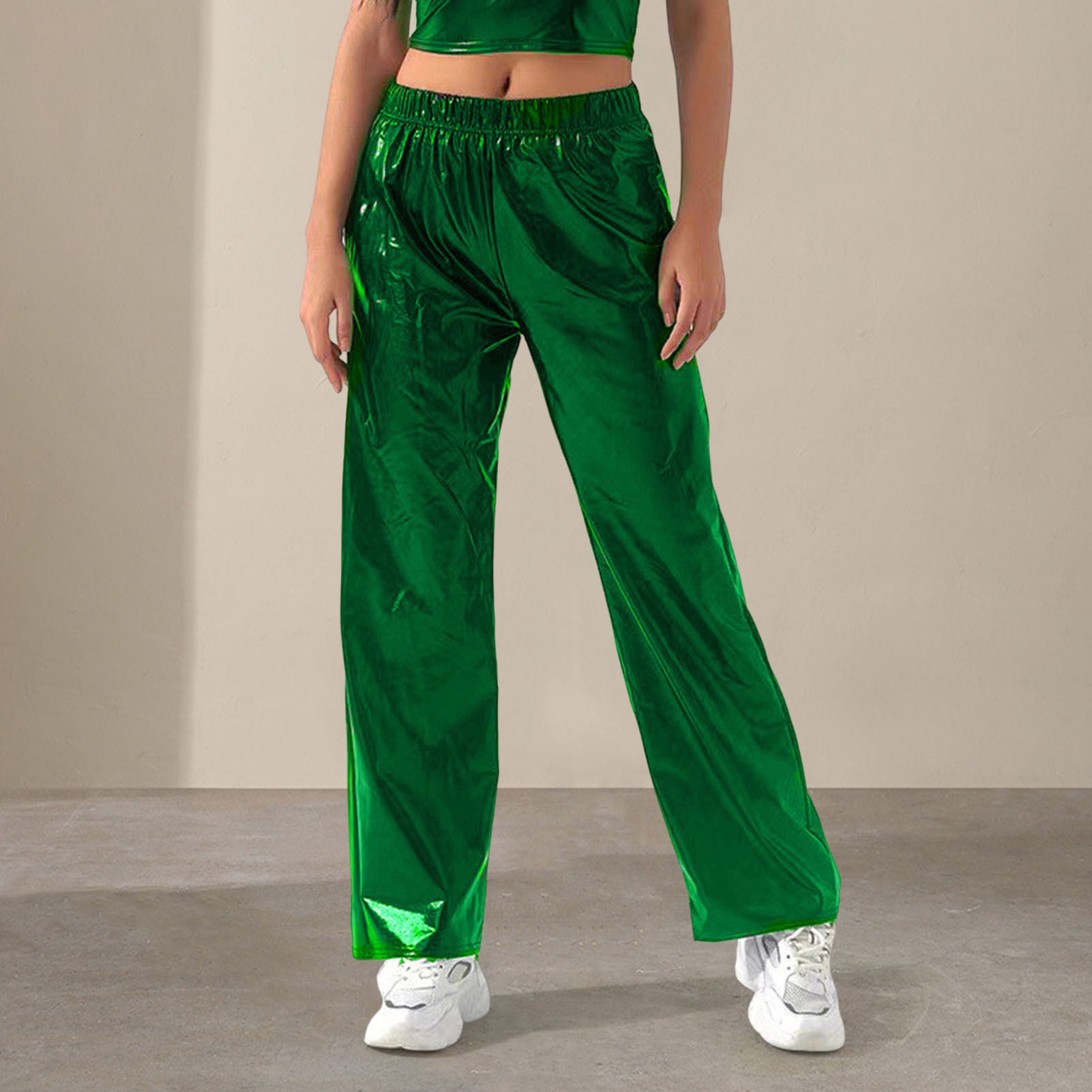 Reflective Elegance: Crafted from faux leather fabric, these pants boast a reflective surface effect that exudes a trendy and fashionable appeal. Elevate your outfit effortlessly with this eye-catching feature.