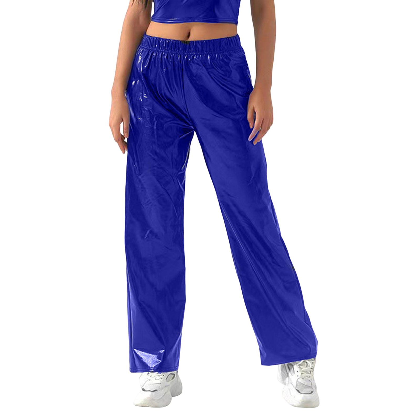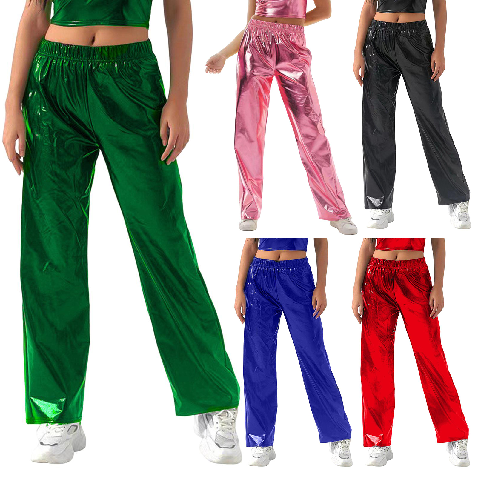 Women’s Fashion Silver Gold Party Leather Pants Vintage Glitter Party Trousers Solid Colour High Waist Slim Trousers