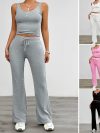 Women’s Clothing Set Summer Square Collar Lady’s Camisole Waist Fold Slim Fit Female Pants Trousers Women’s Set Two Pieces