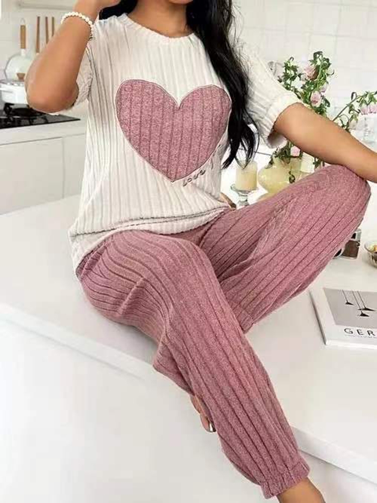 2 reviews for Women’s new style pajamas set heart pattern short sleeve shirt trousers two-piece simple and lovely casual home wear