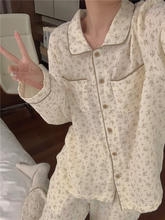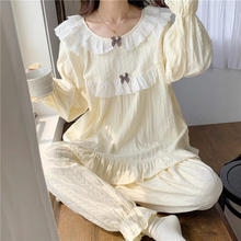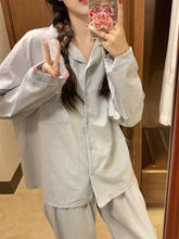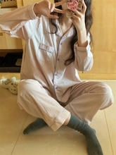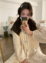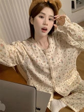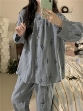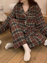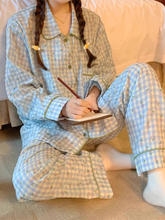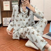 Women’s Pajamas New Autumn Spring Long Sleeve Soft Sleepwear Set Grid cartoon pyjama Woman Home Nightwear Set Cardigan