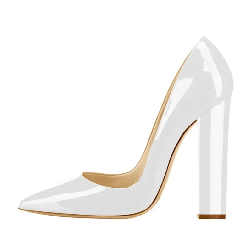 Women's Pointed Toe Block Classic 12cm High Heels Slip on Thick Shoes Wedding Office Dress Chunky Lady Pumps Customized