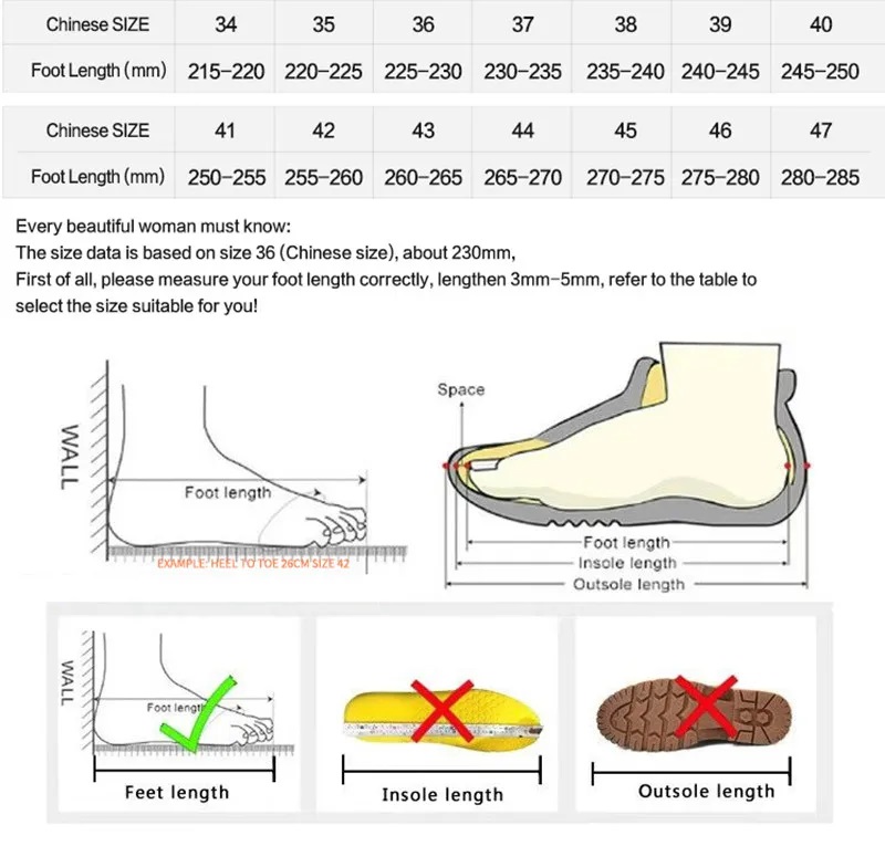Shoe Size(US)Size Chart | 34(US-5), 35(US-5.5), 36(US-6), 37(US-6.5), 38(US-7), 39(US-7.5), 40(US-8), 41(US-9), 42(US-9.5), 43(US-10), 44(US-10.5), 45(US-11) |