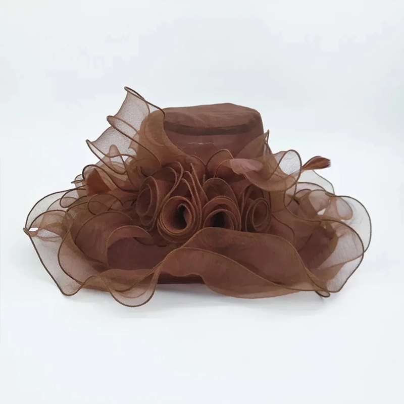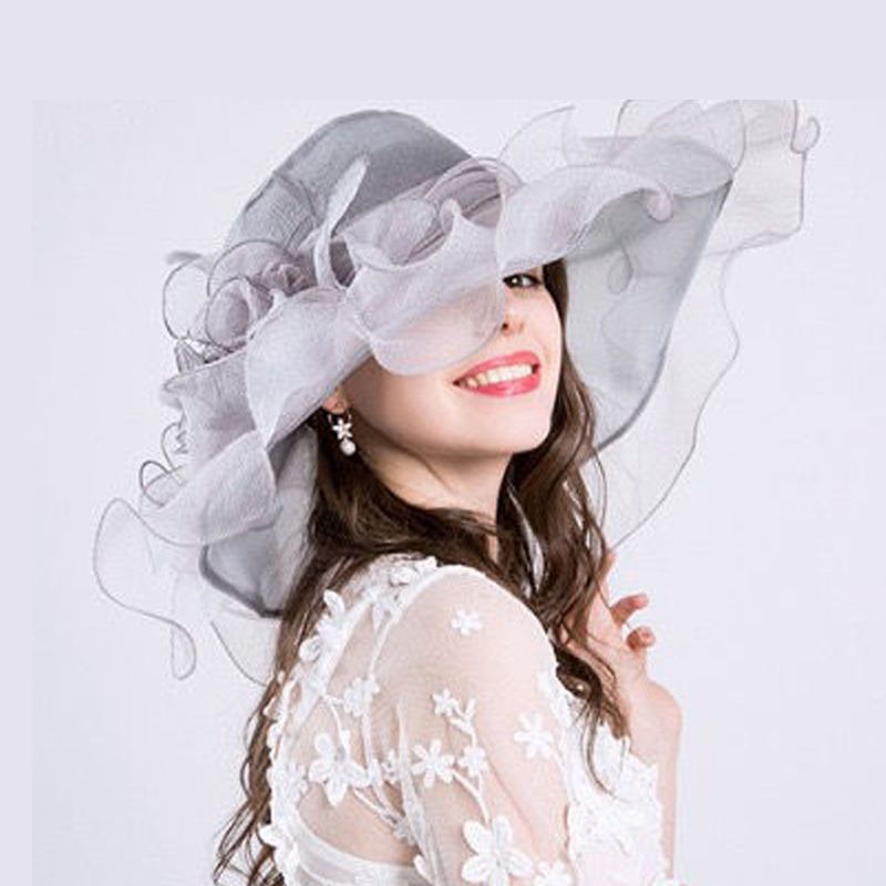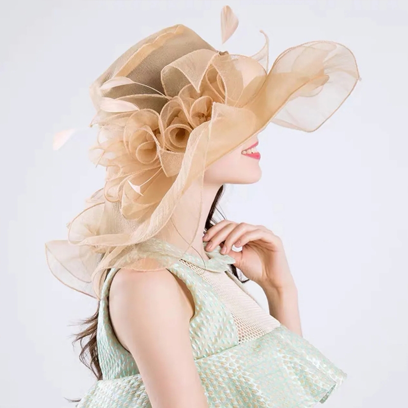 Women’s Sheer Organza Wedding Hat with Wide Brim & Veil – Elegant Kentucky Derby Church Hat for Bride, Mother of Groom, Formal P