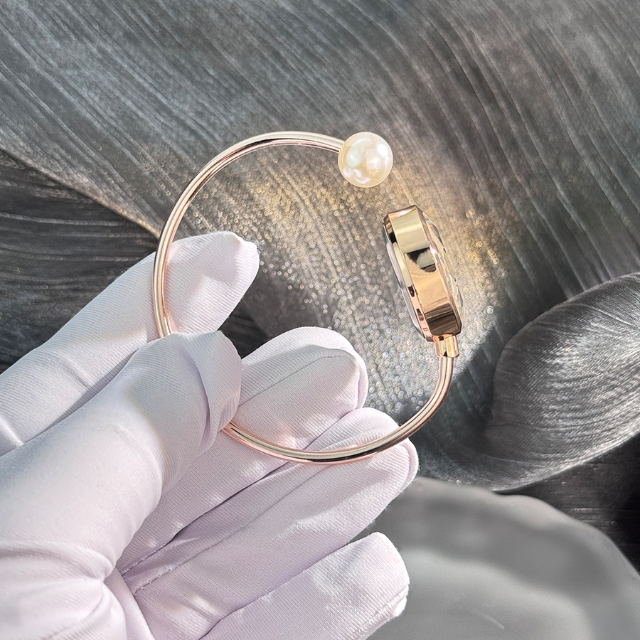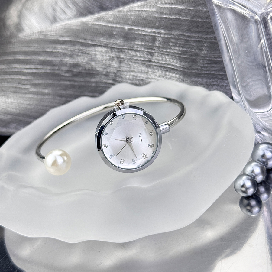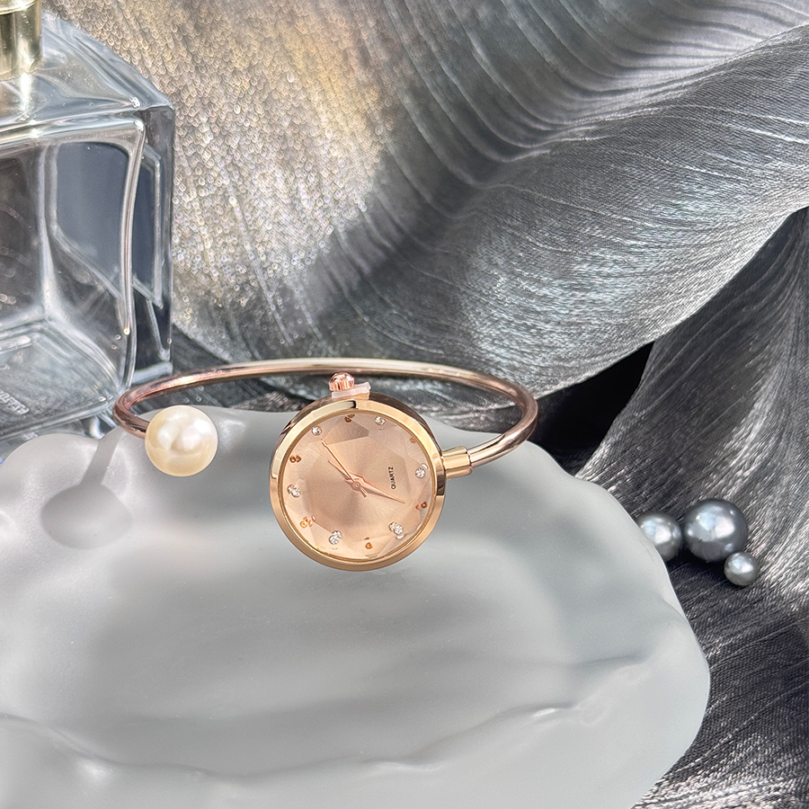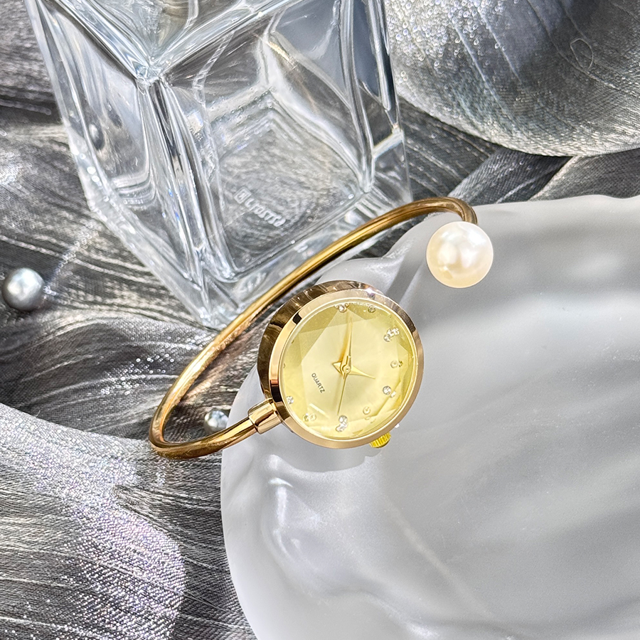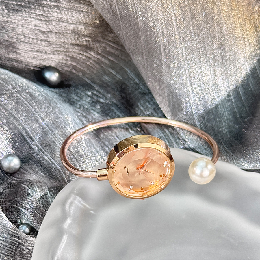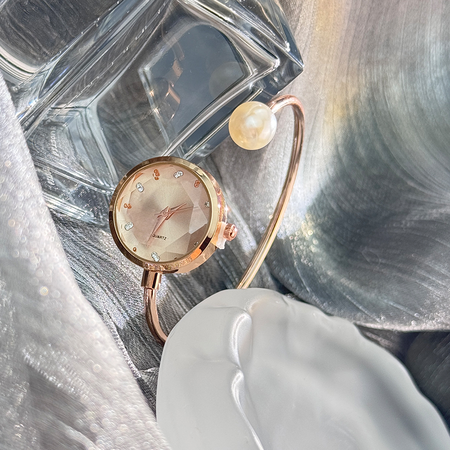 Women’s Slim little bracelet 1 large pearl diamond cut glass rhinestone dial Minimalist quartz watch Bracelet Watch