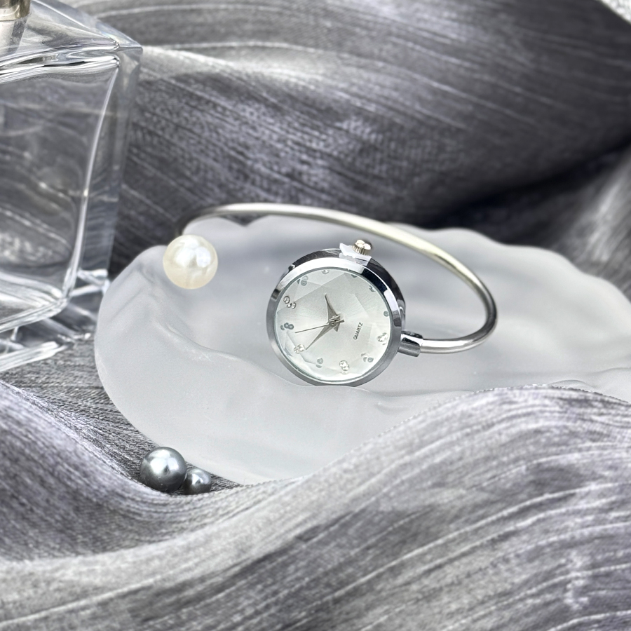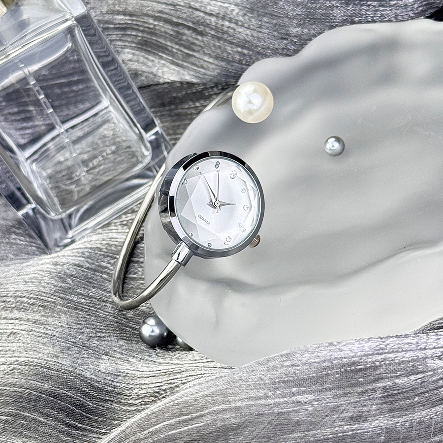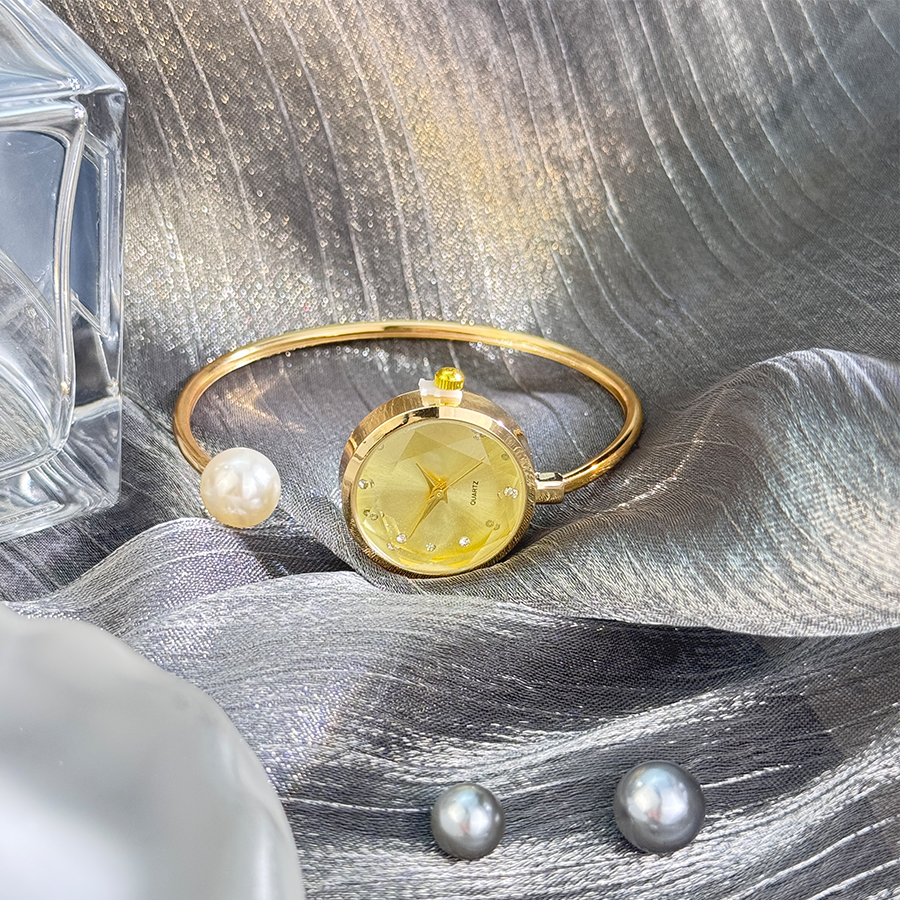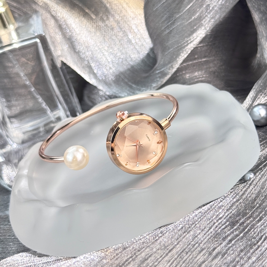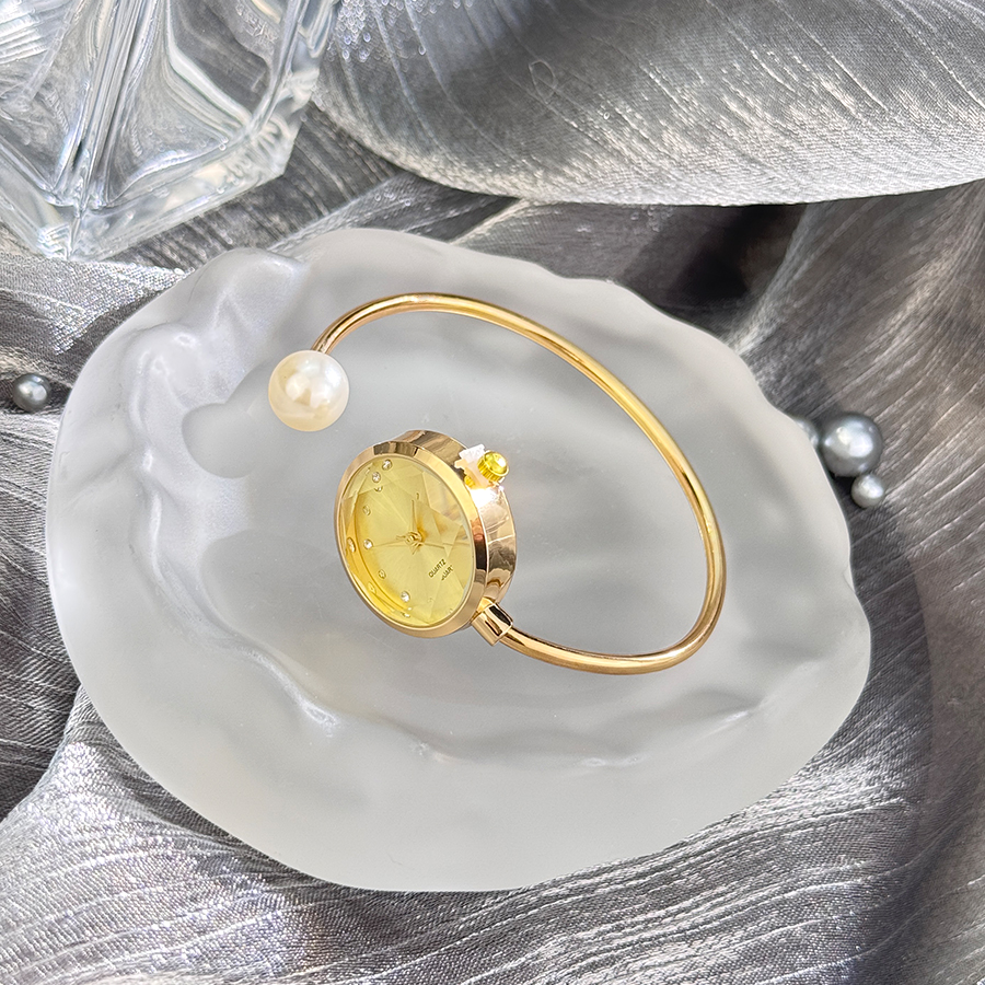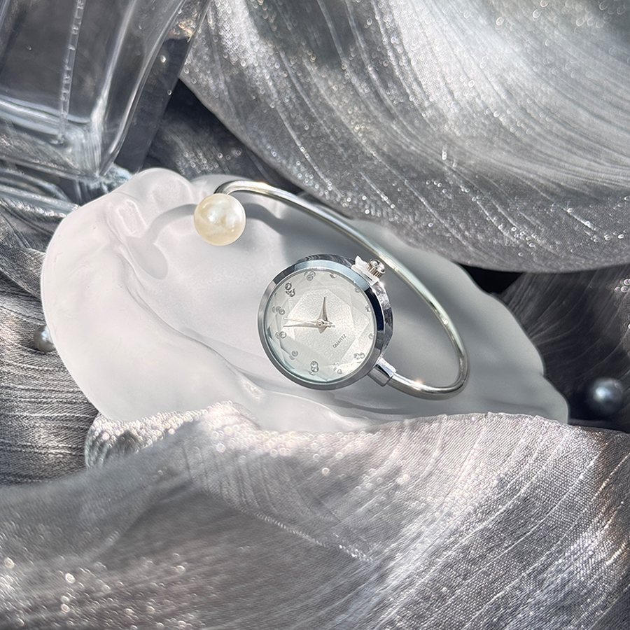 Women’s Slim little bracelet 1 large pearl diamond cut glass rhinestone dial Minimalist quartz watch Bracelet Watch