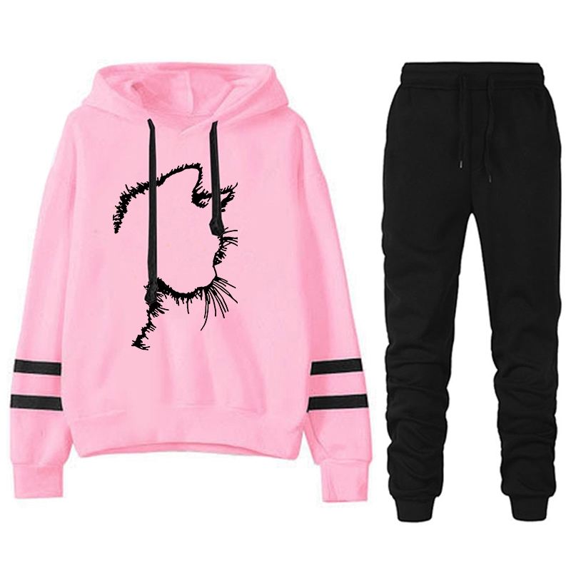 Women’s Sports Suit 2024 Hoodie Two Piece Set for Women Stripe Loose and Comfortable Daily Jogging Casual Tracksuit Matching