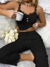 Summer Lace Sexy Casual Pajamas Set For Women Black Solid Color Suspenders Long Trousers Sexy Lounge Set Sleepwear 2 Pcs 3XL