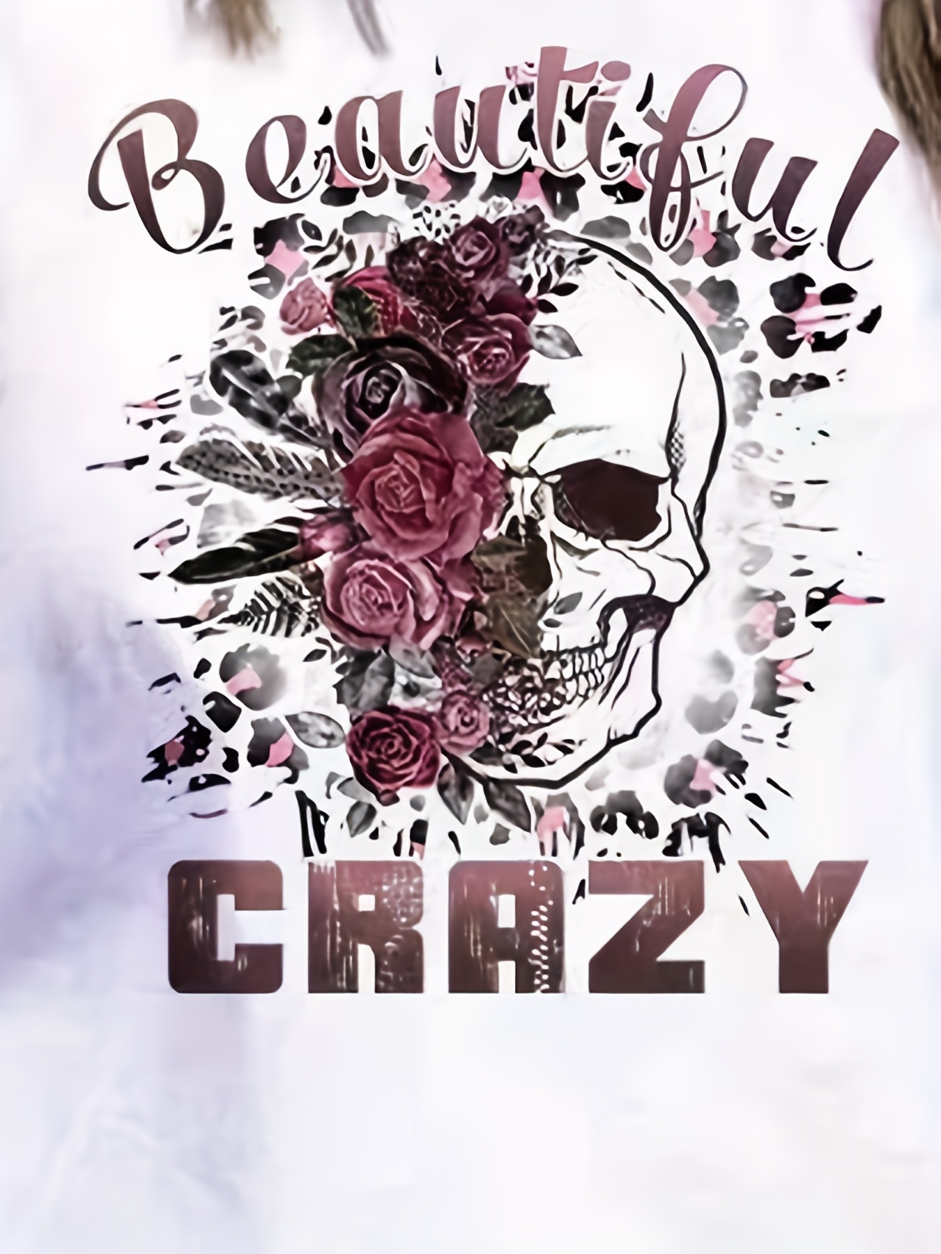 Women’s Summer Skeleton Flower Print Large Casual Sleeveless Loose Tank Top T-shirt Streetwear Oversized O-Neck Vest Off Should