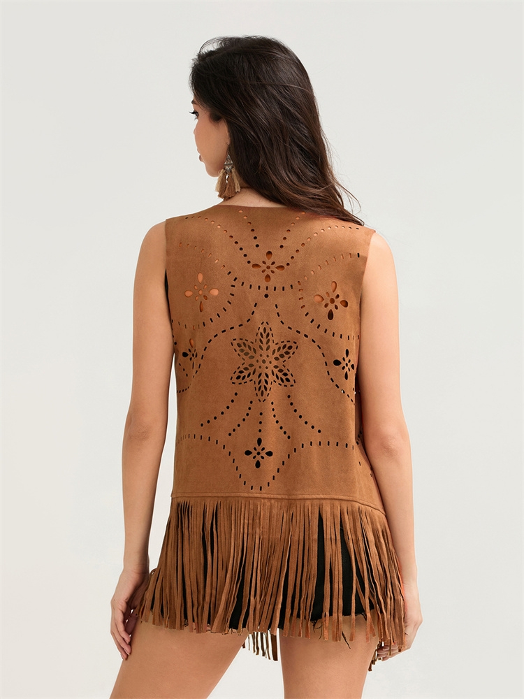 Women's Summer Tassel Vest Coat Hollow Out Flower Sleeveless Cardigans Jacket Cowgirl Stylish Outwear Tops