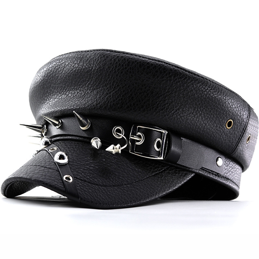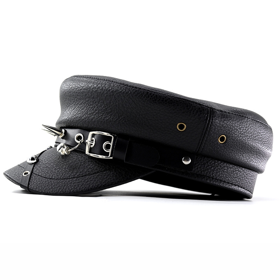 Women’s Trendy Beret Black Pu Leather Flat Top Captain Military Caps Women’s Accessories