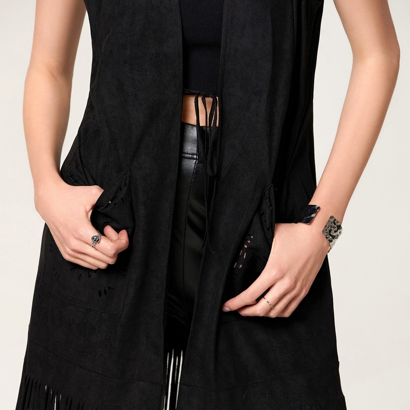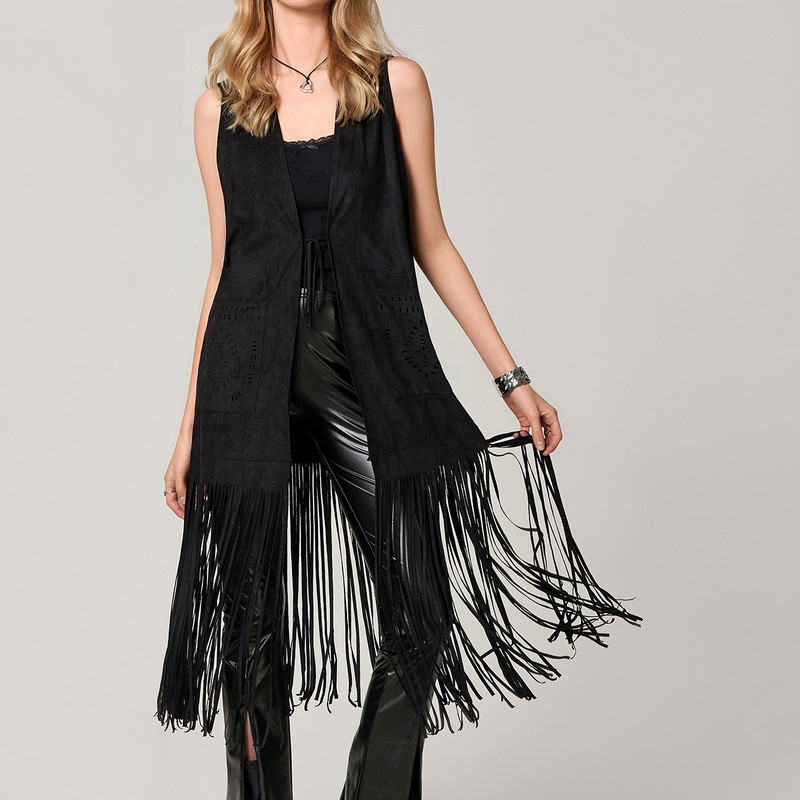 WPNAKS Women Long Tassel Vest Coat 70s Hippie Outfit Sleeveless Open Front Jacket Western Cowgirl Outfit Vintage Clothes