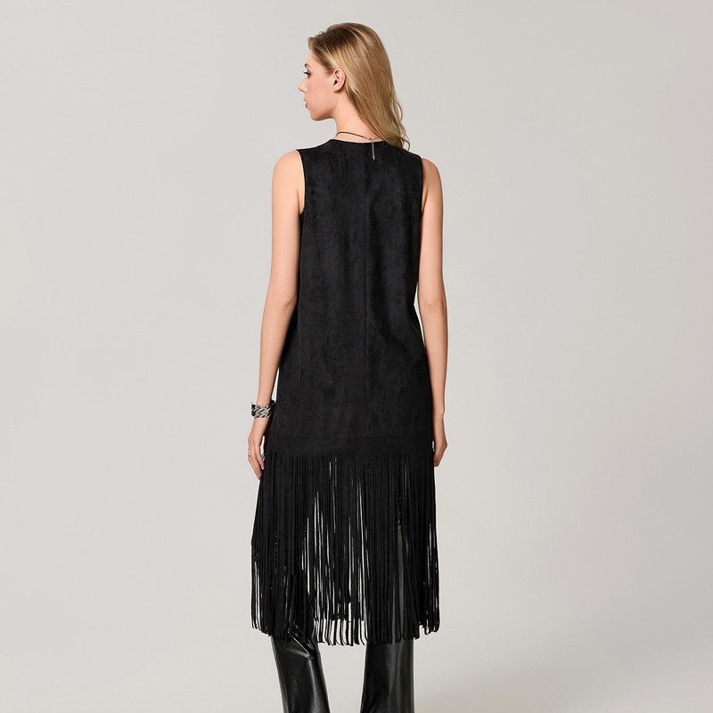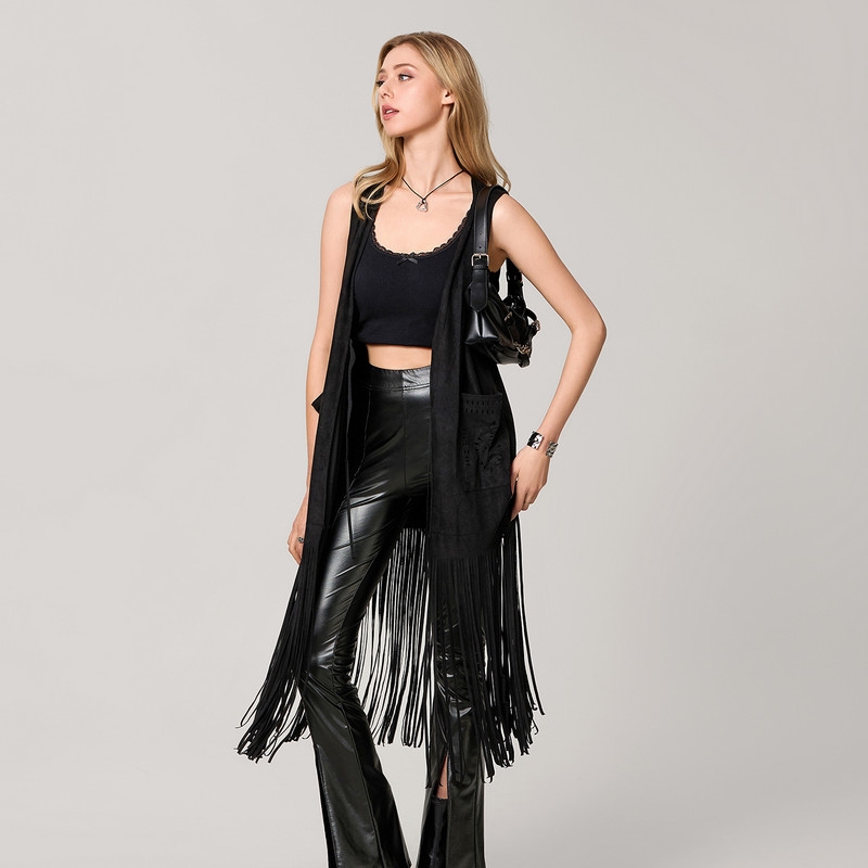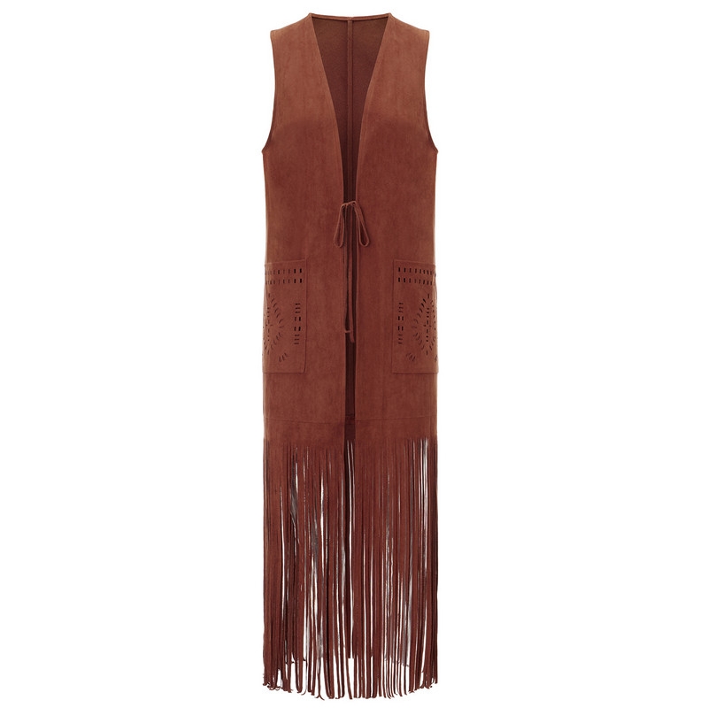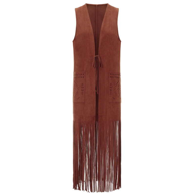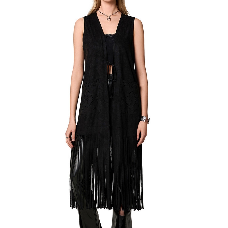 WPNAKS Women Long Tassel Vest Coat 70s Hippie Outfit Sleeveless Open Front Jacket Western Cowgirl Outfit Vintage Clothes