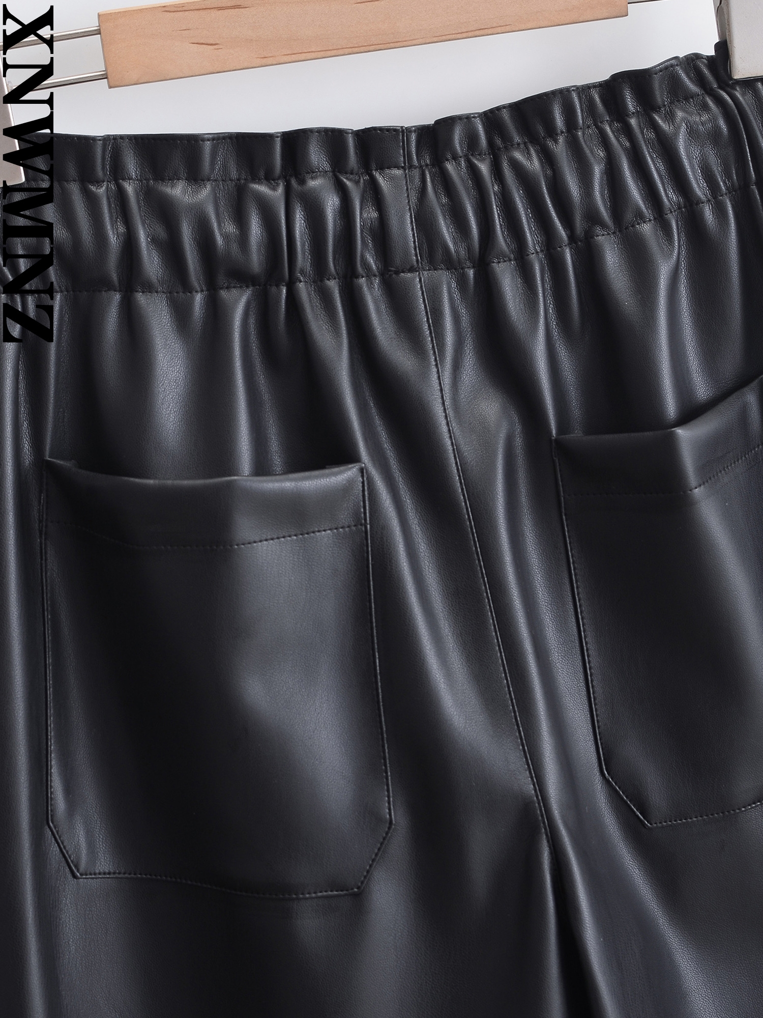 2 reviews for XNWMNZ Women’s Fashion 2023 Faux Leather PU Baggy Trousers Women Vintage Elastic Drawstrings High Waist Versatile Female Pants
