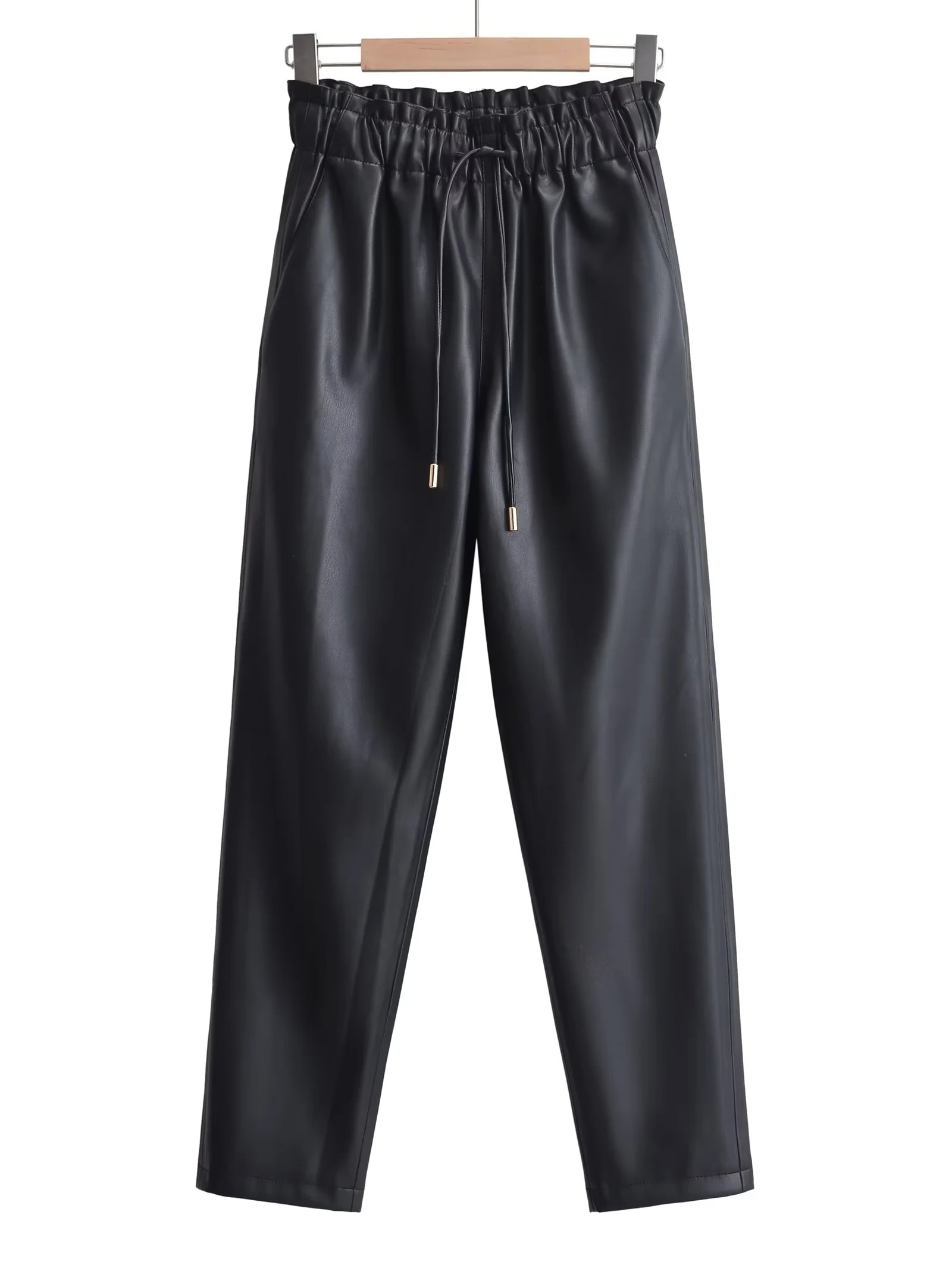 2024 Spring Autumn New Women’s Clothing High Waist Pure Color Leather PU Leather Pants