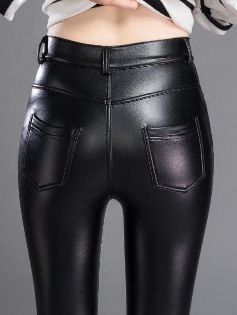 Stretch Skinny Leather Pants for Women Fleece Winter Velvet Casual Trousers Thick Warm Female Pencil Leggings Autumn High Waist