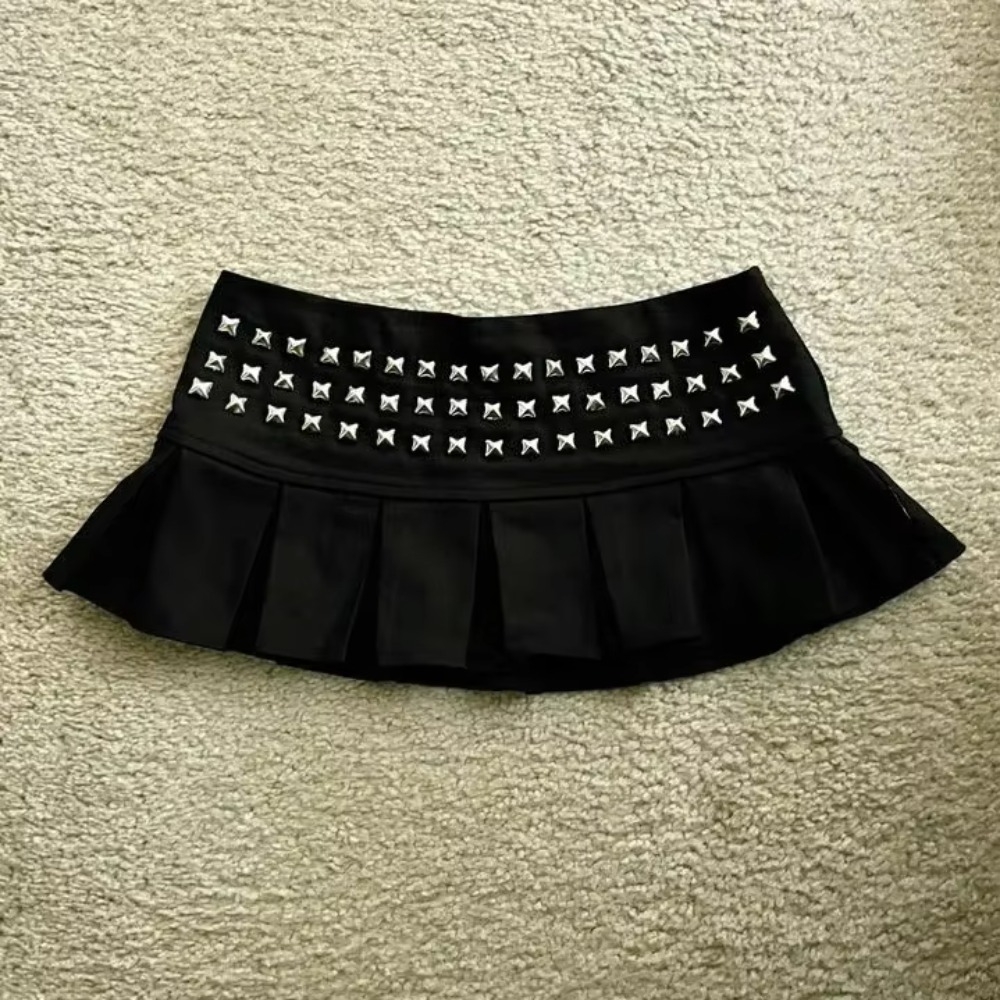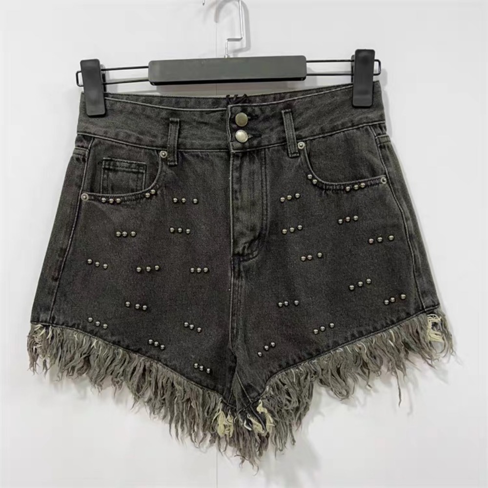 Y2K New Fashion Black Shorts Harajuku Hip Hop Punk Rivet Jean Skirt Mid Rise Loose Denim Shorts Gothic Womens Summer Clothing