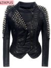 Faux Leather Jacket for Women, Female Winter Coat, Motorcycle Jacket, Faux Suede, PU Zipper Hoodies, Outerwear
