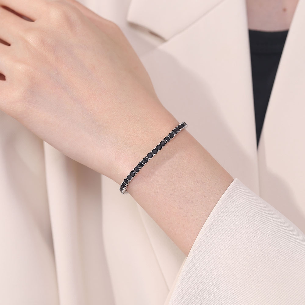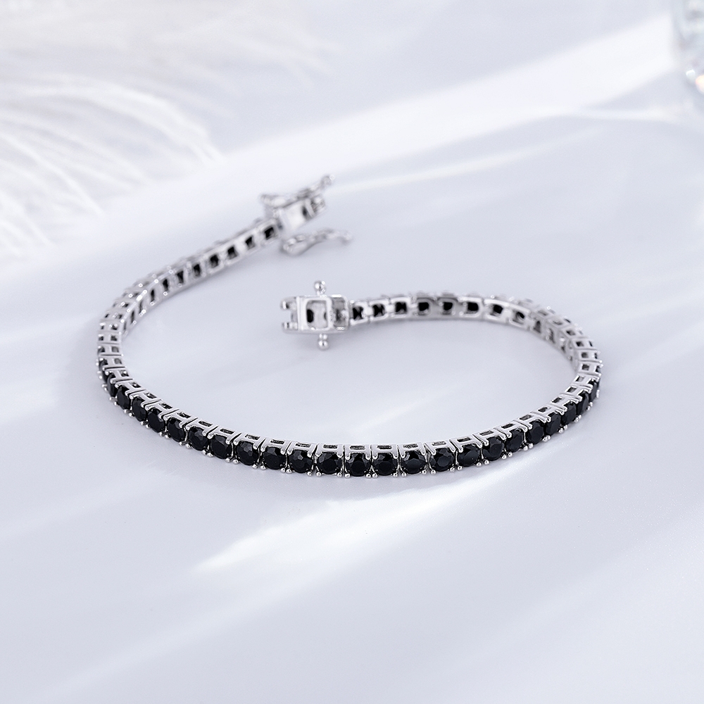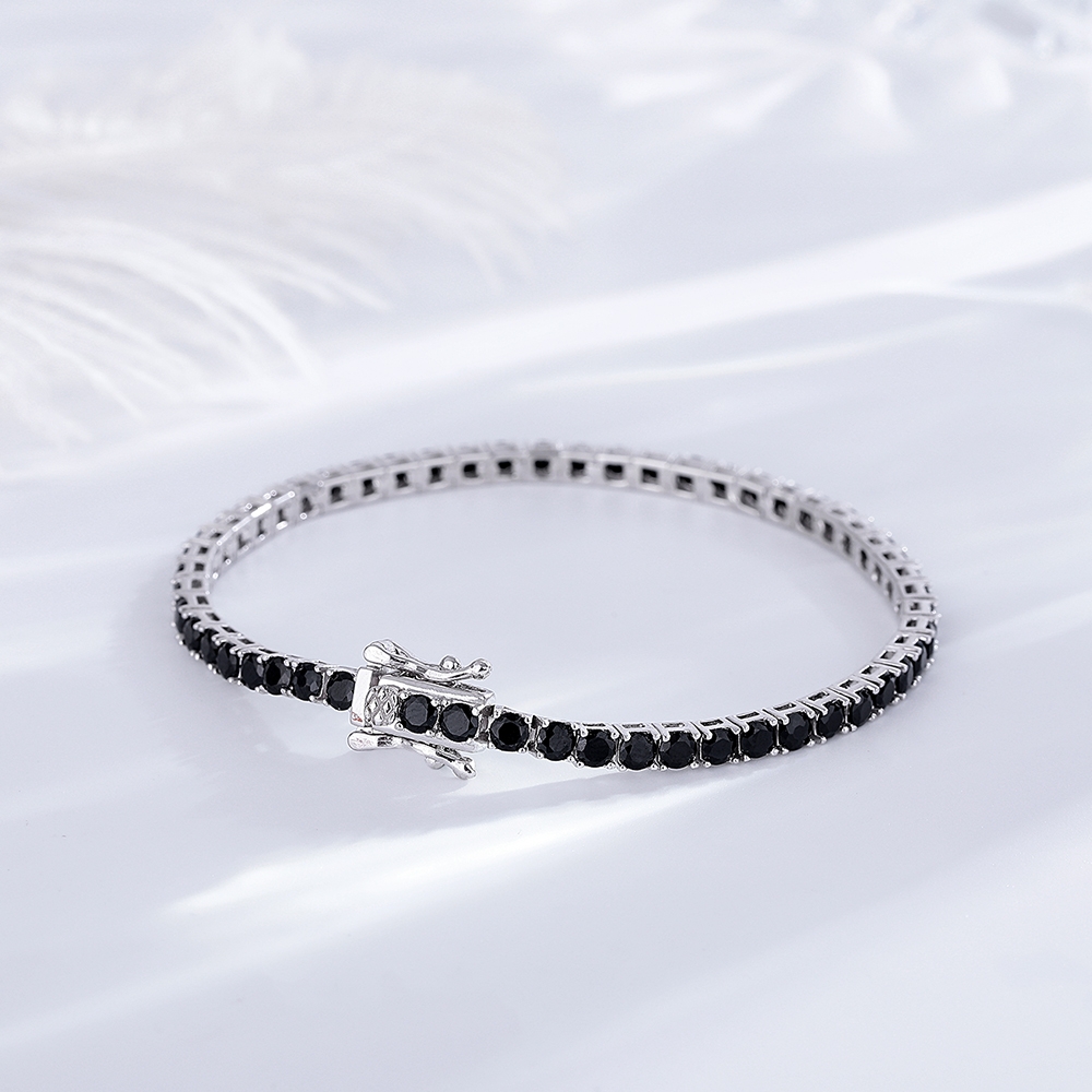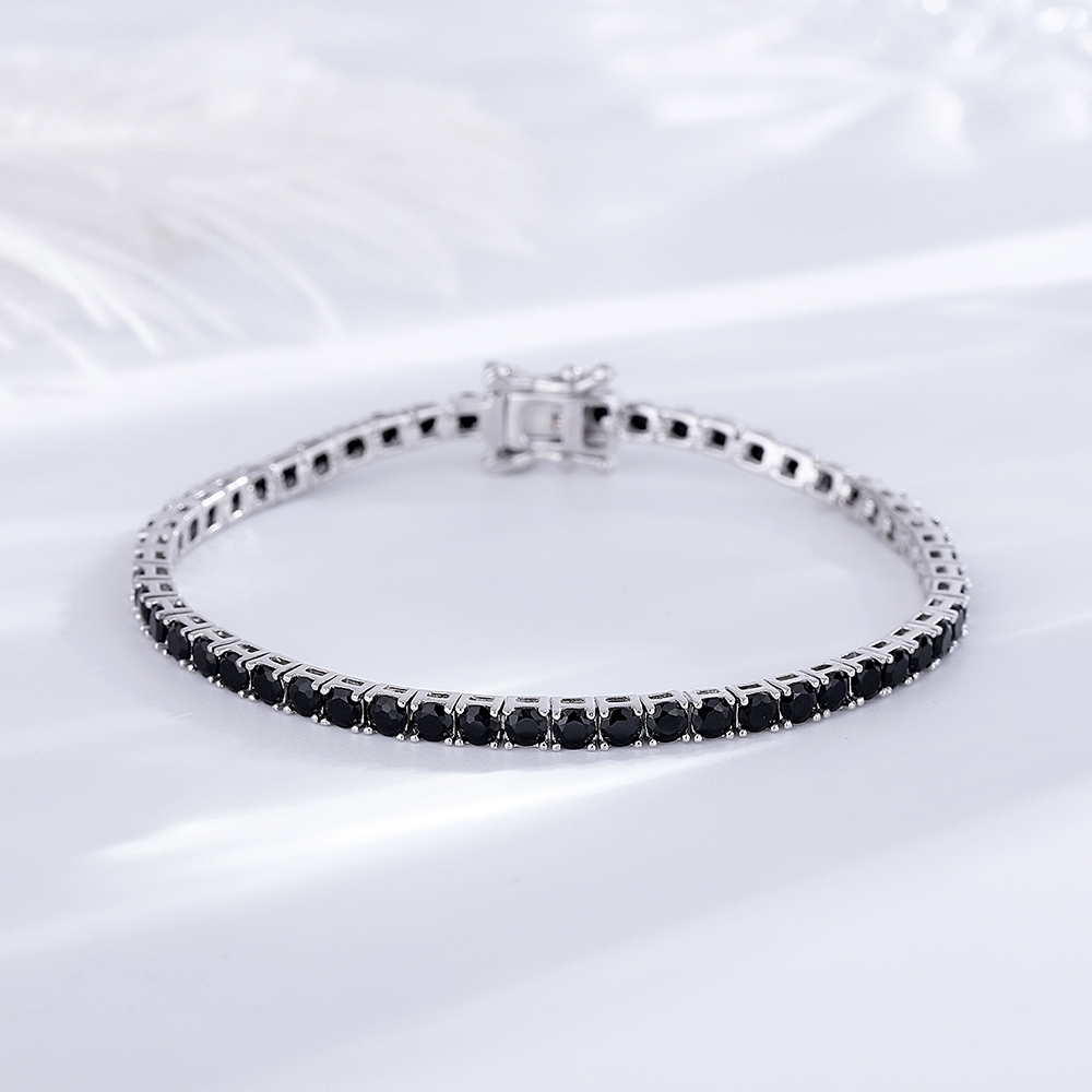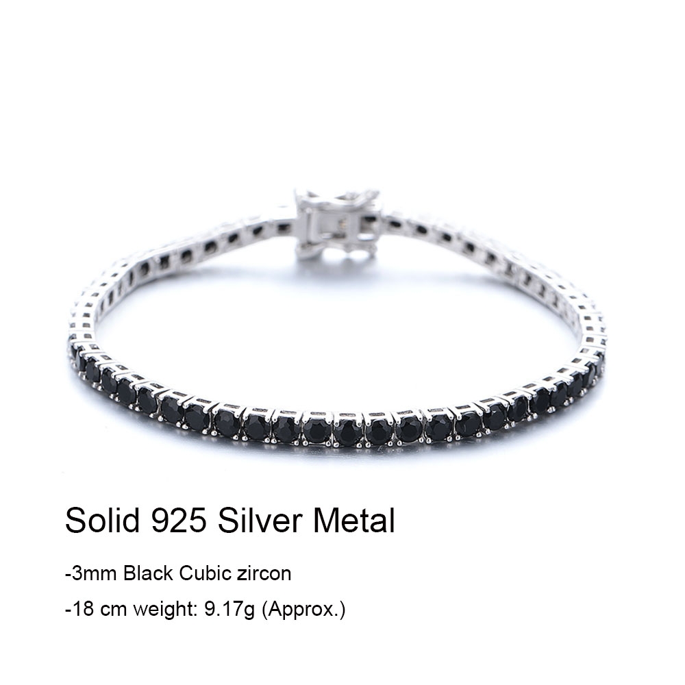 YLMyself 925 Silver Tennis Bracelet 3mm Black CZ Round Pave Unisex Jewelry Gift For Women Men
