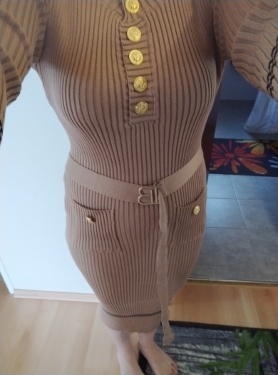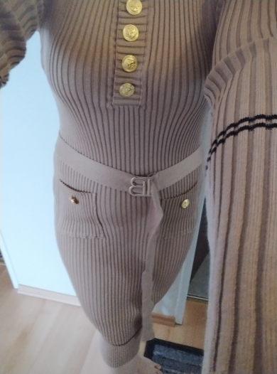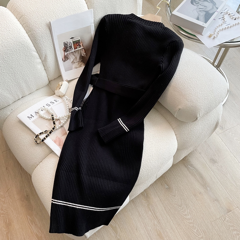 2 reviews for YuooMuoo 2025 Autumn Winter Women Knitted Dress Brand Fashion O-neck Buttons Bodycon Sweater Dress with Belt Lady Office Dress