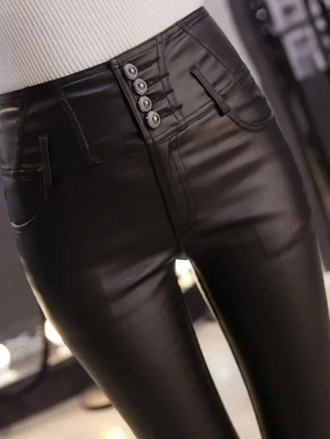 Shascullfites Women Faux Leather Pencil Pants Streetwear Slim Fit Bodycon Trousers Casual Skinny Elastic Women Pants 8 Colors