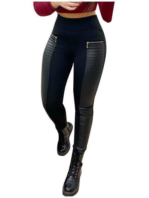Sexy Fashion Women’S Faux Leather Pants Contrast Zipper Design High Waist Skinny Trousers High Waist Skinny Push Up Leggings