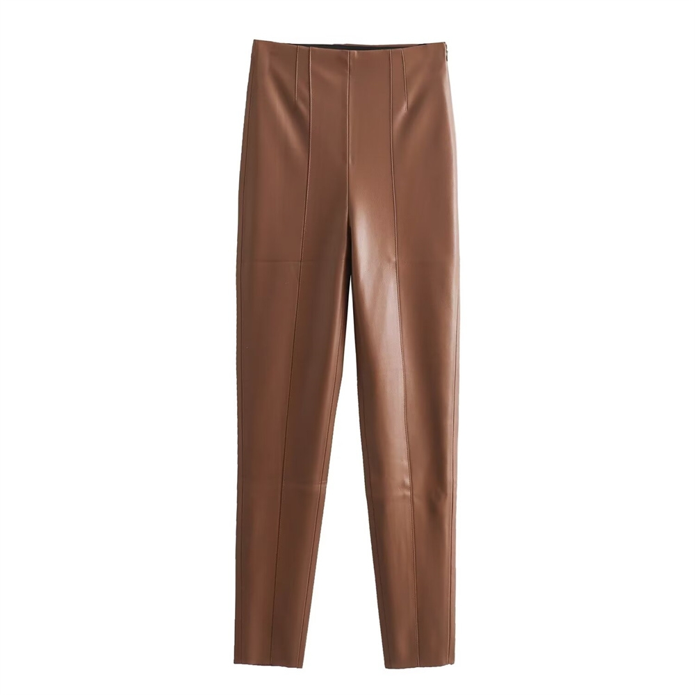 Zach Ailsa 2024 Spring New Product Women’s Fashion and Temperament Solid Color Imitation Leather Bottom Pants
