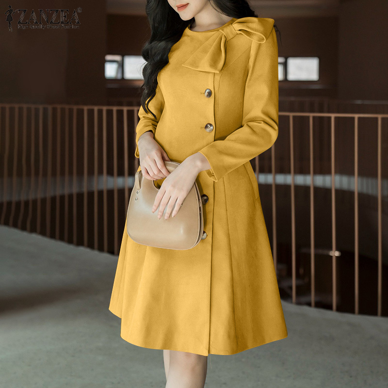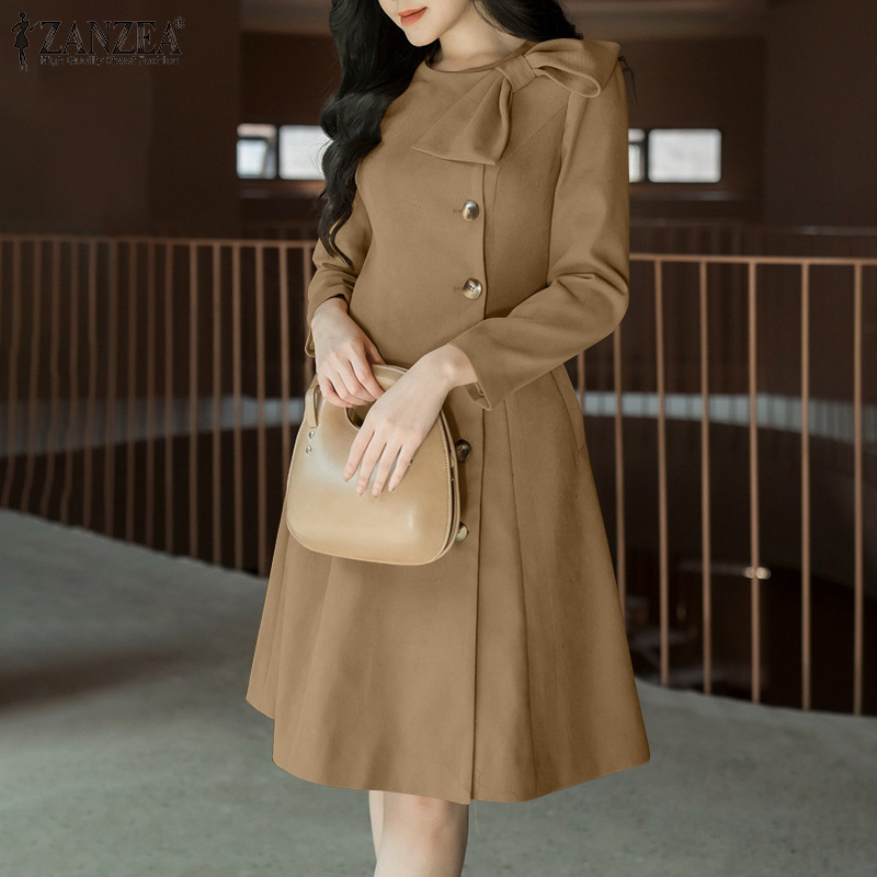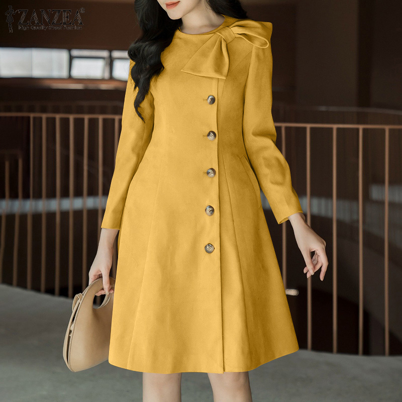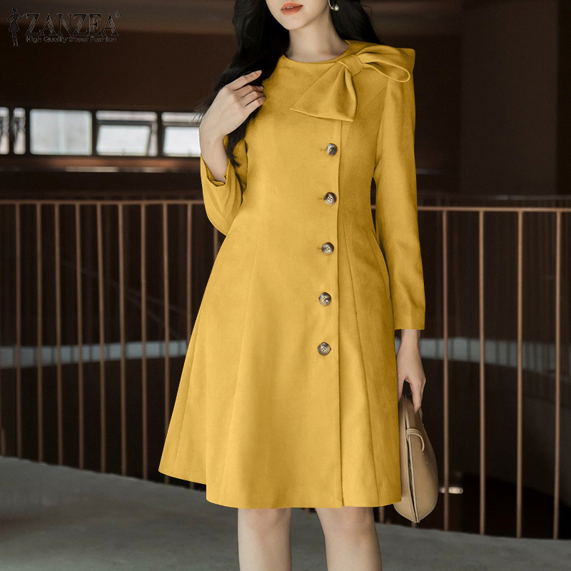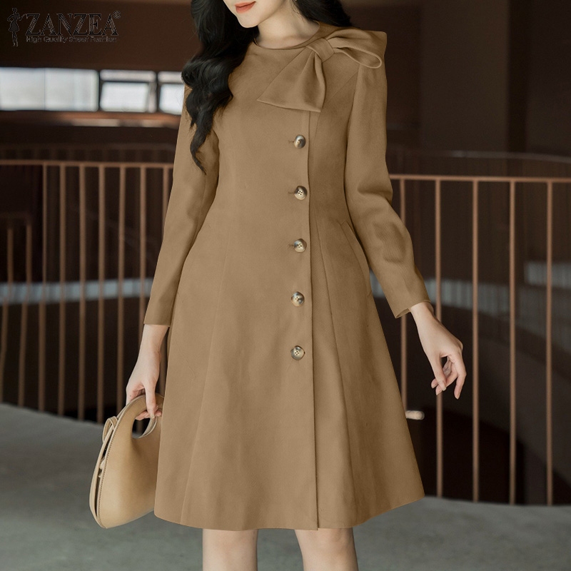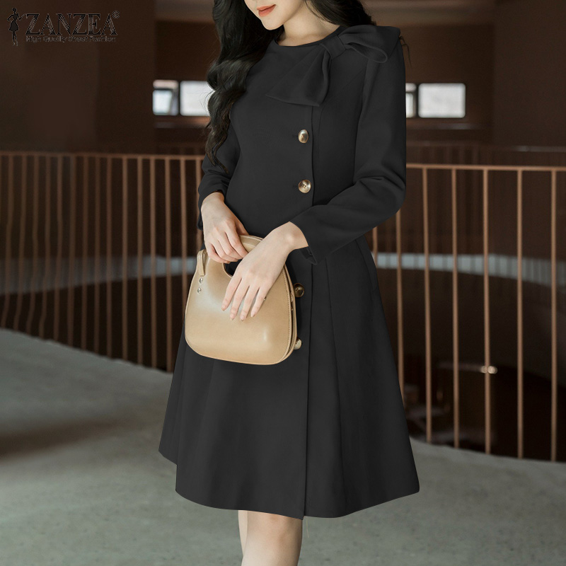 ZANZEA 2024 Summer Elegant Party Sundress Women Bow Tie Neck Knee-Length Dress Casual 3/4 Sleeve Buttons Solid Office Vestidos