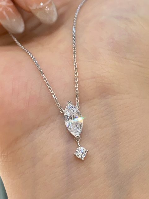 1.1carat Marquise/Round Cut Moissanite Pendant Necklace for Women Lab Diamond Necklaces 925 Sterling Silver Stacking Neck Chain