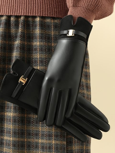 1 Pair of Gloves for Women in Winter Fleece-Lined to Heattech and Touch Screen Pu Elegant and Exquisite Cycling and Driving Gloves