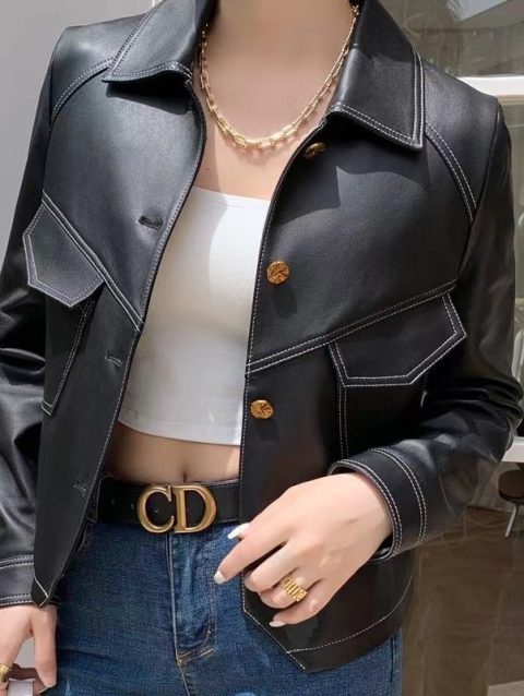2024 Coat Women’s Fall/Winter Explosions PU Leather Jacket New Ladies Western Style Short Denim Lapel Outwear Fashion Trend Tops