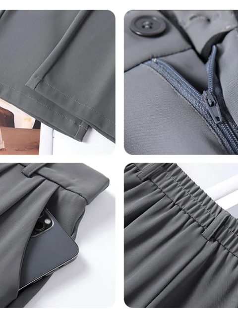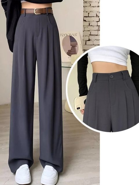 Women Fashion Suit Pants Lady Baggy High Waist Wide Leg Breathable Trousers Lady Straight Leg Slacks Gray Coffee Classic Pants