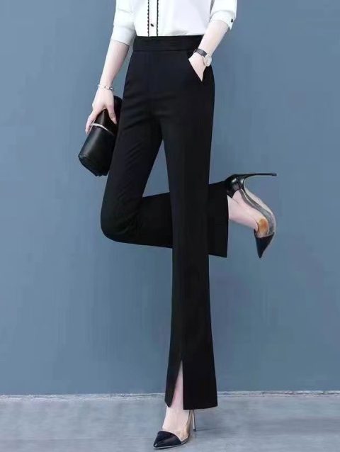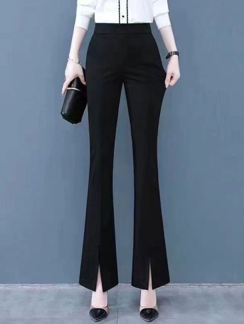 Women’s Monochromatic High Waist Bell-bottoms, Casual Trousers, All-match, Simplicity, Office Clothes, New Style Fashion, Autumn
