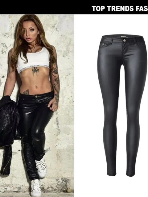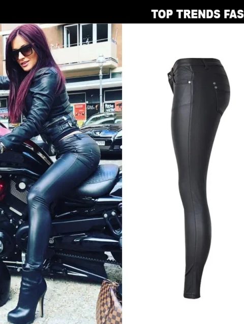 Women’s Leather Pant Low Rise Stretch Coated PU Faux Leather Trousers for Women