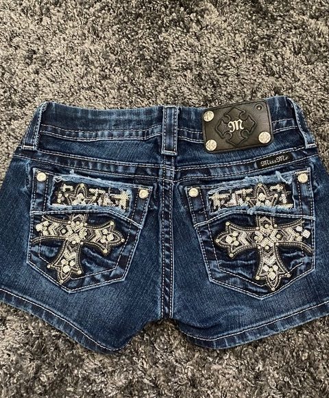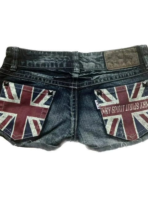 Y2K Mini Shorts Womens Harajuku Vintage Cross Graphic Pockets Embroidery Low Waist Shorts Gothic Sexy Hot Girl Hip Denim Shorts