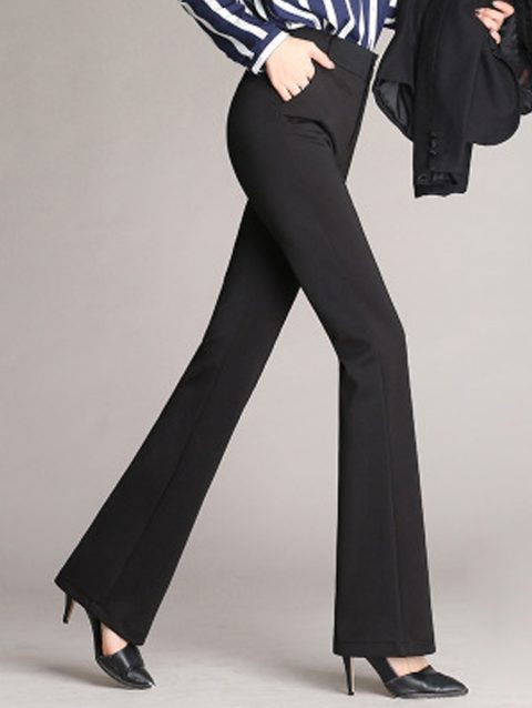Autumn Winter Women’s Pants Solid Casual Front Zipper Flared Pants OL Ladies Career Long Trousers Elegant High Waist Work Pant