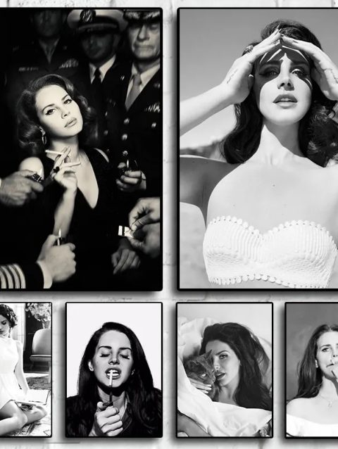 Character Portrait Aesthetic Wall Art Lana Del Rey Music Singer Black and White HD Oil on Canvas Posters and Prints Home Decor