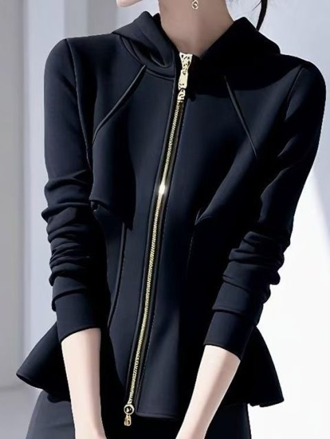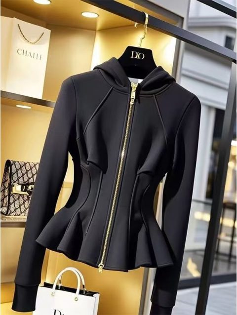 American Fashion Black Sporty Zip Up Hoodie Coat Women Clothes 2025 New Spring Autumn Casual Slim Waist Jacket Women Harajuku