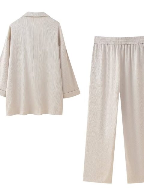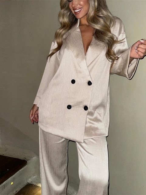European and American Style 2024 Spring and Summer New Women’s Clothing Wrinkle Effect Double Breasted Suit Jacket Pants Set