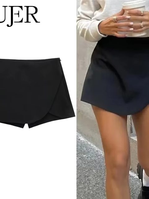 MUJER 2025 Black Mini Skirt Shorts Woman Fashion Asymmetric Skort For Women High Waist Short Skirts Woman Summer Casual Shorts
