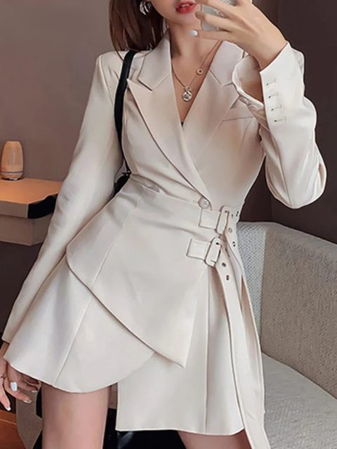Mini Party Blazer Dress Women Korean One-piece Office Lady Elegant Dress Chic Sashes Design Long Sleeve Clothes Winter