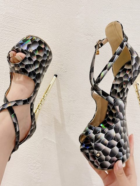 Liyke 2025 Summer Summer Platform High Heels Pumps Sandal Women Sexy Snake Print Peep Toe Buckle Strap Ladies Banquet Dress Shoe