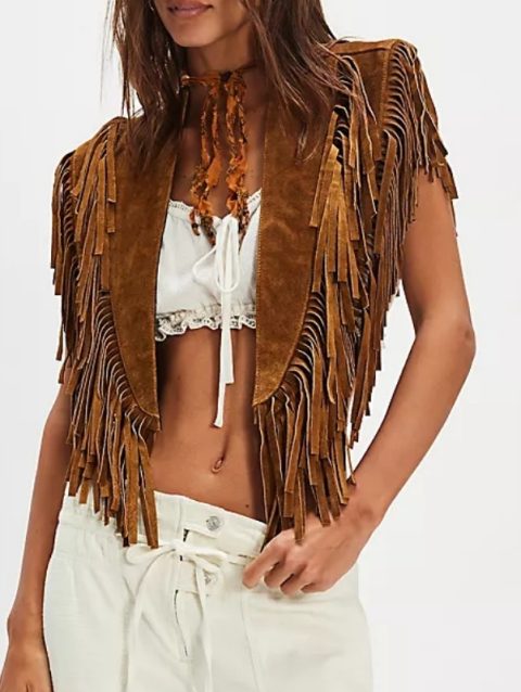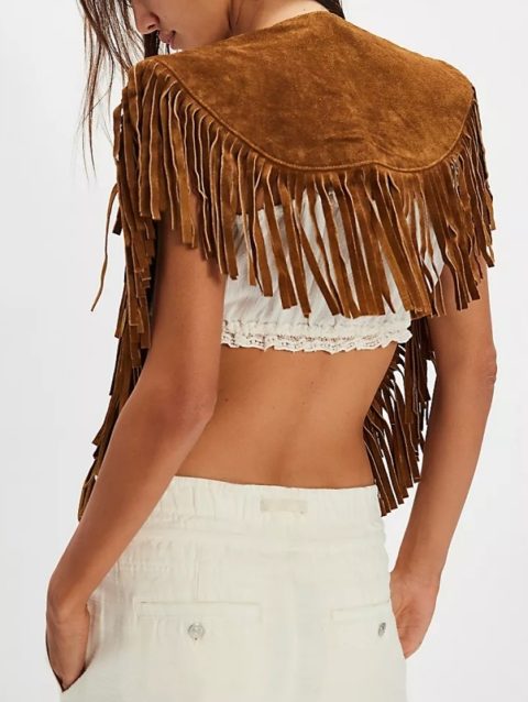 Women Tassel Vest Y2K Sleeveless Fringe Wide Eyes Suede Collar Shawl Open Front Boho Western Jacket Cardigan